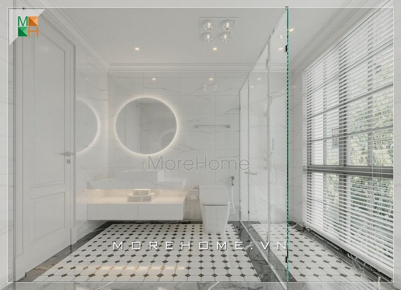 Sử dụng cửa sổ lớn hoặc gương phản chiếu giúp khuếch đại ánh sáng tự nhiên, tạo cảm giác không gian mở và thoáng đãng. Bên cạnh đó, kết hợp đèn LED âm trần thông minh cho phép điều chỉnh độ sáng theo tâm trạng, mang đến trải nghiệm thư giãn tuyệt vời mỗi khi bước vào phòng tắm.